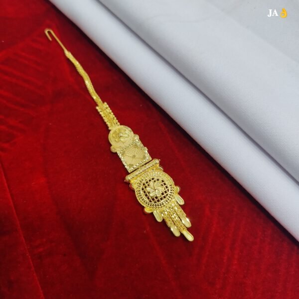Make a grand entrance with our exquisitely crafted Gold-Plated Maang Tikka. This piece isn’t just jewelry; it’s a work of art that captures the essence of Indian heritage.