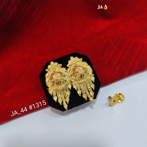 Whether paired with a saree, lehenga, or a chic Indo-western outfit, these earrings bring just the right amount of sparkle without being overpowering. Their compact size ensures all-day comfort, while the rich golden sheen adds a luxurious charm to your look.